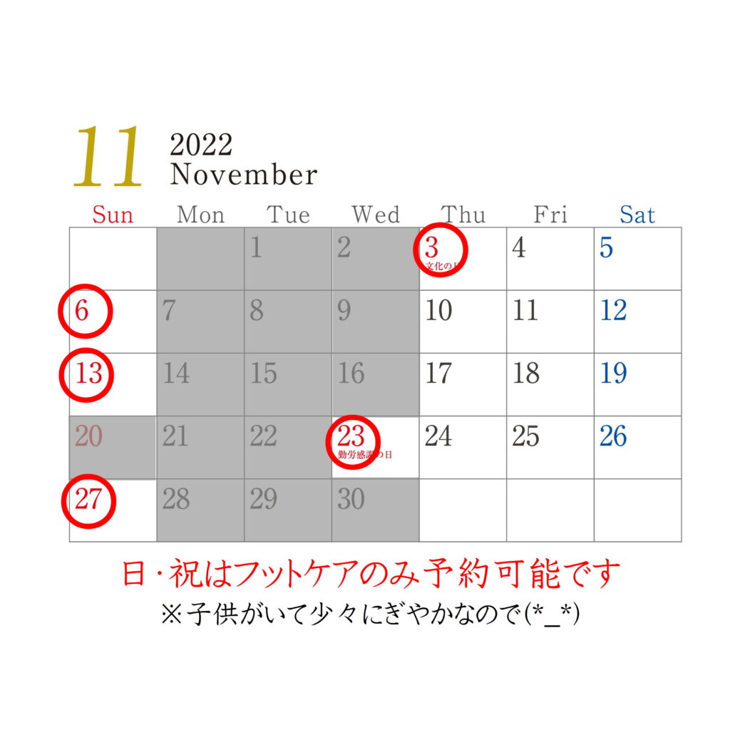 2022年11月営業日のお知らせ 2022 10/27 お知らせ 2022年10月27日 ご予約はコチラ 11月より日曜・祝日のご予約も承ります。 日曜・祝日は子供達がお店にいるので、いつもよりにぎやかです。 脳洗浄足整体リラックスしたい 当てはまる方は平日・土曜日のご予約をお勧めいたします。 目次最新の投稿 保護中: [限定公開]藤川流/家族風呂の楽しみ方 2025 秋 入荷情報 【2025年9月 近況報告】夏の疲れリセット!「脳疲労ケア」人気と佐賀ショートトリップ 9割の人が知らない頭汗・顔汗の悩みを解決する方法! 足が燃えるように熱い!それ、バーニングフィート症候群かも?原因と対策【何科を受診?】 お知らせ うおのめ シューフィッター ダ・ヴィンチのあし フットケア外来 原因 巻き爪 巻き爪矯正 痛い 脳洗浄 もしかして、軽い靴が体にいいと思ってませんか? 熊本市 I.C様 高校3年生「受験で悩んでいます」 関連記事 2025 秋 入荷情報 2025年10月9日 【2025年9月 近況報告】夏の疲れリセット!「脳疲労ケア」人気と佐賀ショートトリップ 2025年9月26日 9割の人が知らない頭汗・顔汗の悩みを解決する方法! 2025年9月19日 足が燃えるように熱い!それ、バーニングフィート症候群かも?原因と対策【何科を受診?】 2025年8月31日 YouTube動画で逆効果?体を痛める前に知ってほしい「体の声」の聞き方 2025年8月8日 2025 シンプルなリボンバレエ入荷 2025年7月25日 🦶足裏のガサガサ、乾燥だけじゃない!タンパク質不足が原因かも?🤔 2025年7月18日 2025年6月「足どり」をご紹介!👣✨ 2025年6月24日