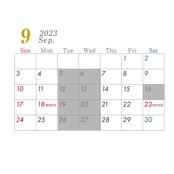 2023年9月営業日のお知らせ|熊本,阿蘇,巻き爪,うおのめ,ドイツ式フットケア